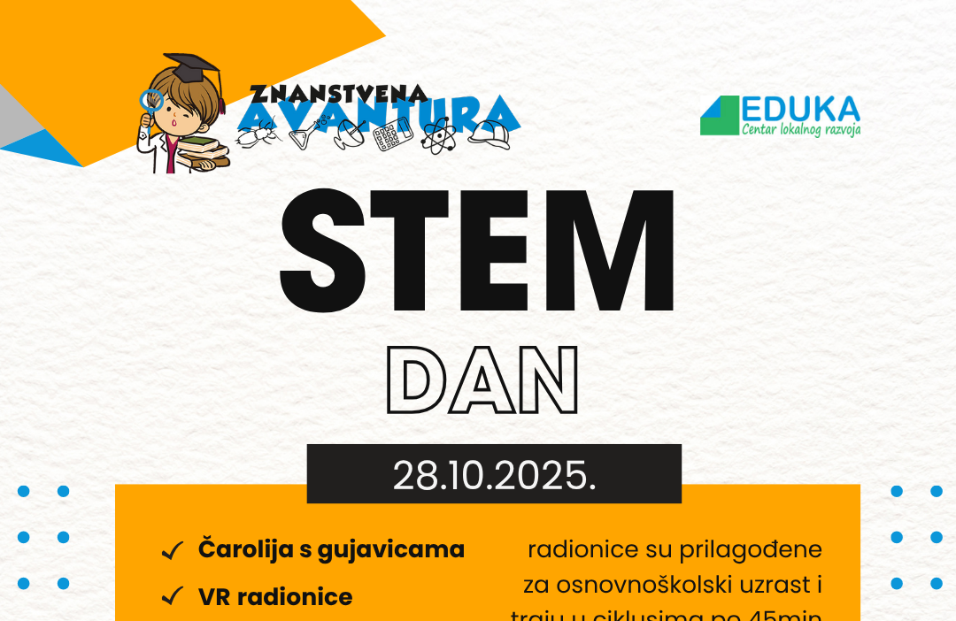 Upusti se u svijet znanosti, tehnologije i otkrića – pridruži nam se na uzbudljivim STEM radionicama koje potiču radoznalost, timski rad i kreativno rješavanje problema.