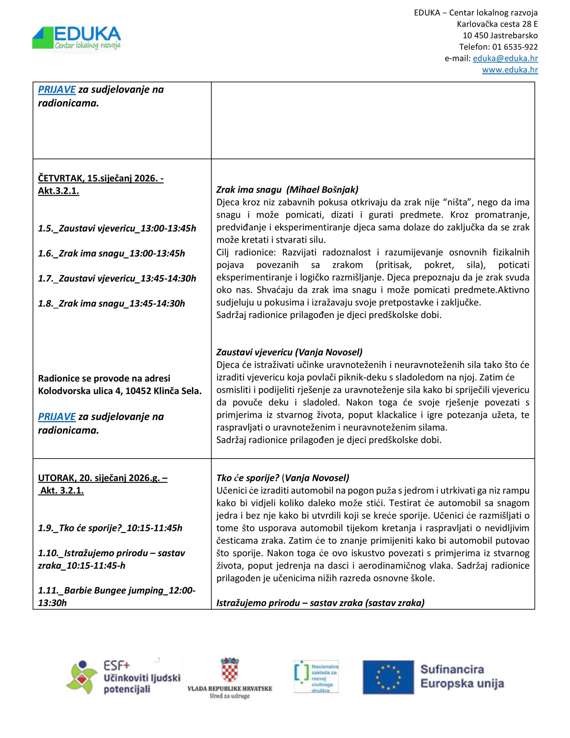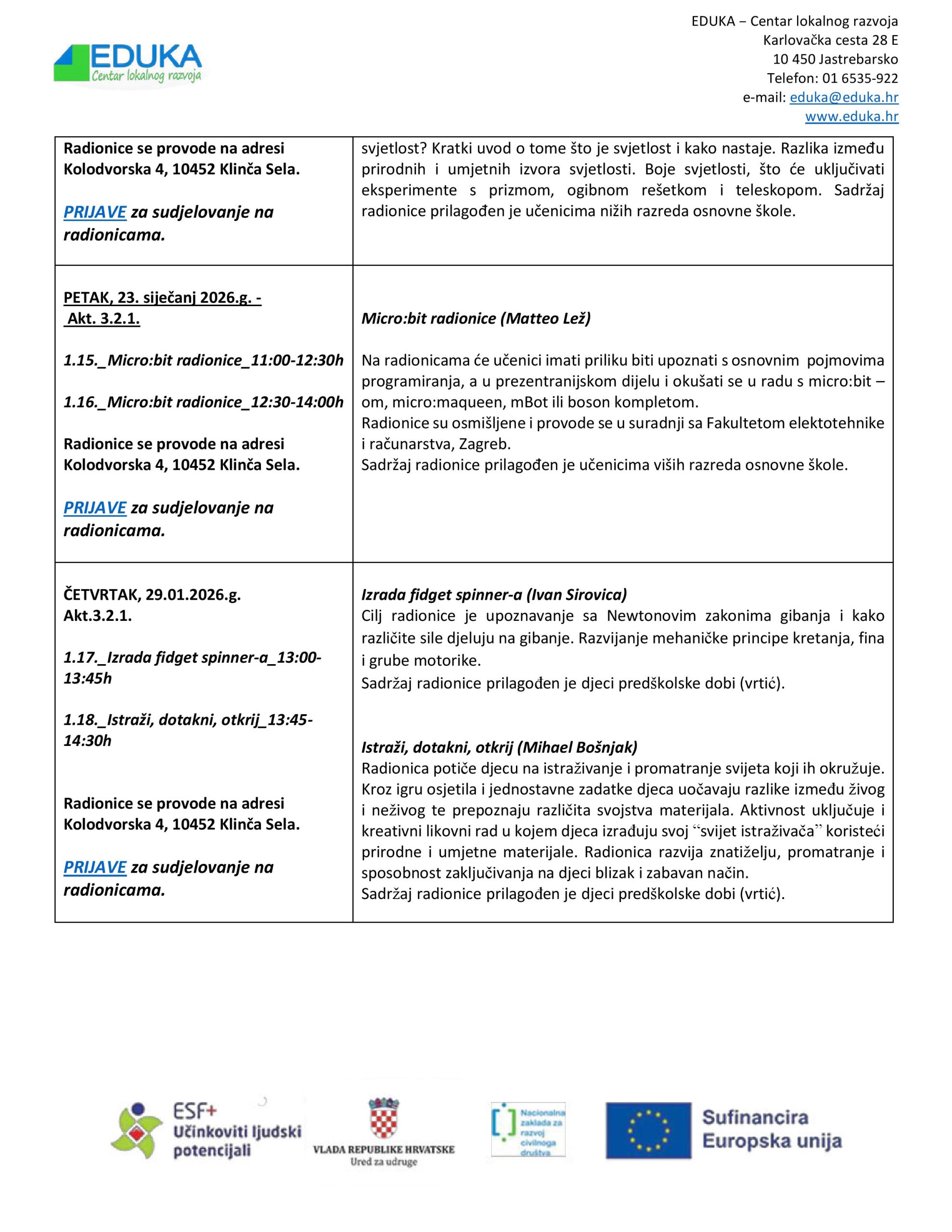 Prijava na radionice