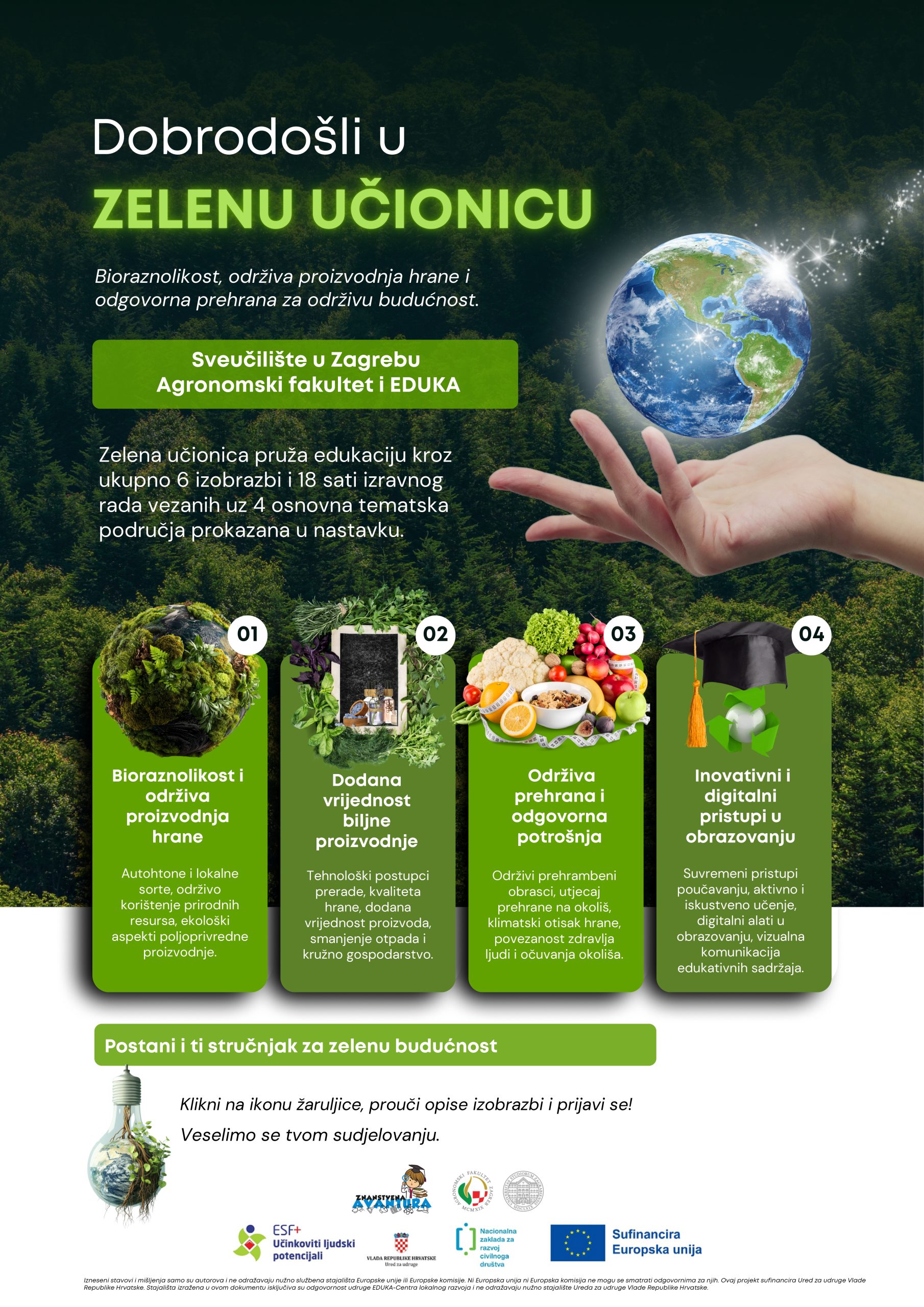Zadovoljstvo je obavijestiti da su započele prijave za Izobrazbe koje, u sklopu SF projekta “ZNANSTVENA AVANTURA SF.2.4.06.04.0007, provode stručnjaci s Agronomskog fakulteta, Zagreb. Prijave su otvorene do četvrtka 05.02.2026.g.